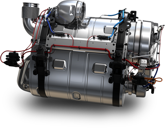 Este sistema de postratamiento de gases de escape de caja única de última generación combina la tecnología de reducción catalítica selectiva (SCR) y el filtro de partículas diésel (DPF) para ofrecer emisiones casi nulas y un bajo mantenimiento en una unidad más ligera y compacta.