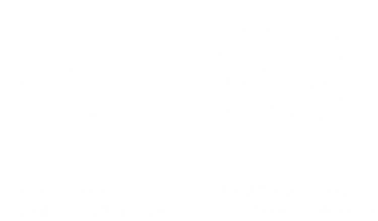 El innovador diseño de pistón ondulado de Mack ofrece una mejora del 2 % en el ahorro de combustible y una reducción del 90 % en el hollín. Las ondas en el recipiente del pistón redirigen las llamas en la cámara de combustión para utilizar todo el oxígeno disponible para una combustión más limpia y completa que los pistones diésel estándar.