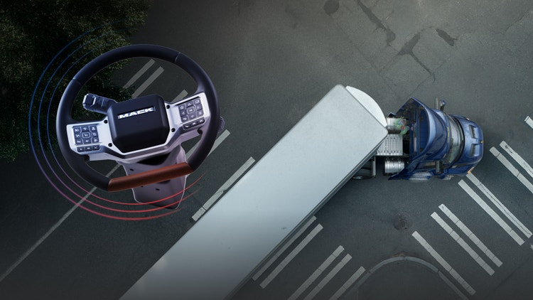 La tecnología de asistencia al conductor Mack Command Steer disponible reduce el esfuerzo del conductor hasta en un 85%.